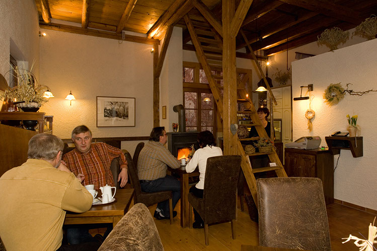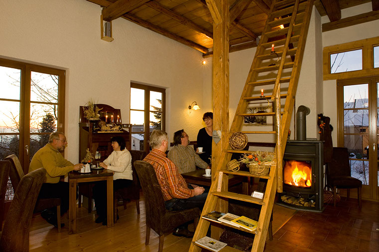 "Kleines Café in der Scheune" – hier können Sie Ihren Urlaub nach der Anreise bei einem Cappuccino oder einer Tasse Kaffee ruhig und entspannt beginnen.