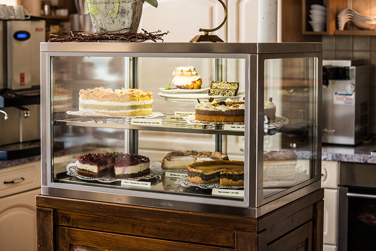 Es gibt selbstgebackenen Kuchen und Torten.